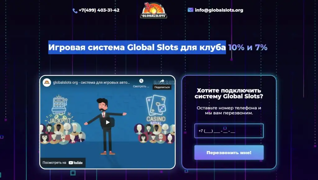 Использование игровой платформы Global Slots осуществляется через веб-сайт для администрирования системы. Возможности веб-сайта включают следующее: